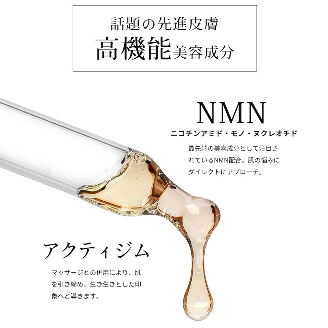 水、BG、グリセリン、ペンチレングリコール、バチルス/ダイズ発酵エキス、アスコルビルグルコシド、アルブチン、プラセンタエキス、セラミドNP、アセチルヒアルロン酸Na、ヒアルロン酸Na、加水分解ヒアルロン酸、ヒト遺伝子組換オリゴペプチド-1、ヒト遺伝子組換ポリペプチド-11、ナイアシンアミド、トレハロース、パルミチン酸アスコルビルリン酸3Na、3-O-エチルアスコルビン酸、アスコルビルリン酸Na、コンフリー葉エキス、ニコチンアミドモノヌクレオチド、トコフェロール、グリチルリチン酸2K、加水分解コラーゲン、ムラサキ根エキス、ハトムギ種子エキス、ダイズ種子エキス、乳酸桿菌/豆乳発酵液、アルテミシアパレンス花/葉/茎油、オレンジ果皮油、パルマローザ油、ビターオレンジ葉/枝油、ベルガモット果実油、マンダリンオレンジ果皮油、ヒドロキシアセトフェノン、キサンタンガム、PEG-60水添ヒマシ油、クエン酸Na、フェノキシエタノール、EDTA-2Na