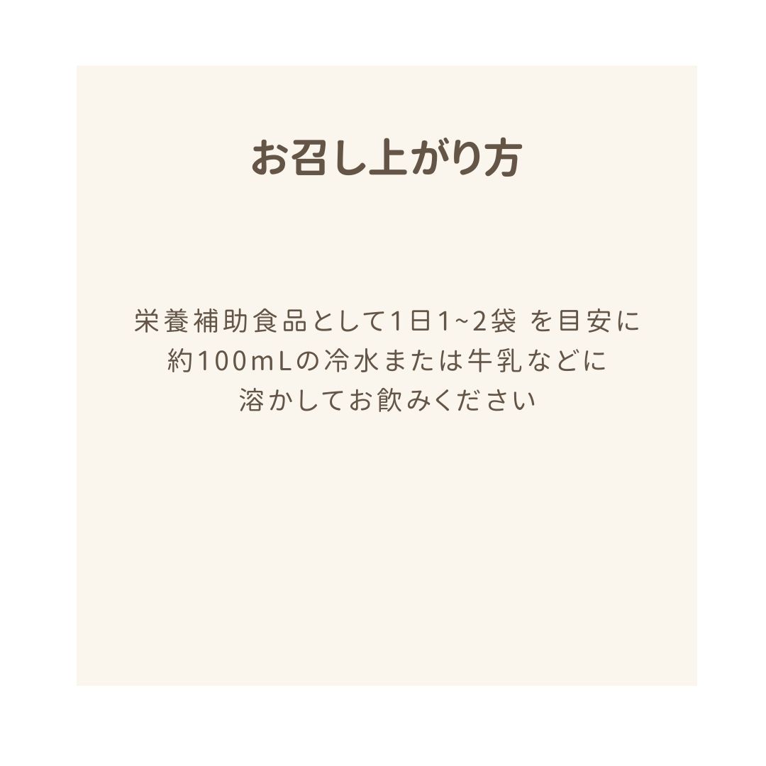 栄養補助食品として1日1~2袋を目安に、約100mlの冷水、または牛乳などに溶かしてお飲みください。