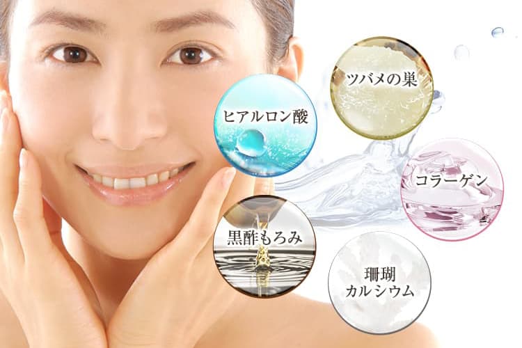 乾燥酵母(リトアニア製造)、葉酸含有酵母、もろみ酢粉末、ミネラルイースト、ヨウ素含有酵母、卵殻膜粉末(卵を含む)、燕の巣加工品(デキストリン、酵素処理燕窩)、フィッシュコラーゲン(ゼラチンを含む)、アセロラ果汁末、乾燥野菜粉末(大麦若葉、ケール、ブロッコリー、キャベツ、大根葉、かぼちゃ、さつまいも(紫芋)、チンゲン菜、パセリ、人参、セロリ、苦瓜、ほうれん草、桑の葉、モロヘイヤ、よもぎ、白菜、アスパラガス、トマト、野沢菜、れんこん)、メロン抽出物(小麦、メロン)、乳タンパク加水分解物、ガラクトオリゴ糖、ザクロ果汁パウダー、乳酸菌末(殺菌乳酸菌体、デキストリン)(乳成分を含む)、微細藻類由来DHA・EPA油、スピルリナ原末、野菜ミックス(ケール、ブロッコリー、ヨモギ、アスパラガス、オクラ、コマツナ、カボチャ、ダイコン葉、パセリ、ホウレンソウ)/貝殻未焼成カルシウム、セルロース、グルコン酸亜鉛、ピロリン酸第二鉄、ステアリン酸Ca、ビタミンC、ビタミンE、リン酸カルシウム、ラクトフェリン(乳由来)、ビタミンB₆、サンゴカルシウム、葉酸、ナイアシン、パントテン酸Ca、クエン酸、ヒアルロン酸、酸化防止剤(カテキン、抽出ビタミンE)、β-カロテン、ビタミンD、ビタミンB₁、ビタミンB₂、ビタミンA、ビタミンB₁₂