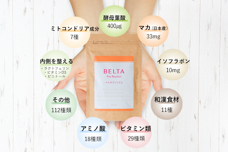 マカ・イソフラボン・コエンザイムQ10・ラクトフェリン・和漢素材などを配合した妊活専用葉酸サプリです。ミトコンドリアに着目し、ご夫婦でお飲みいただける配合成分。
