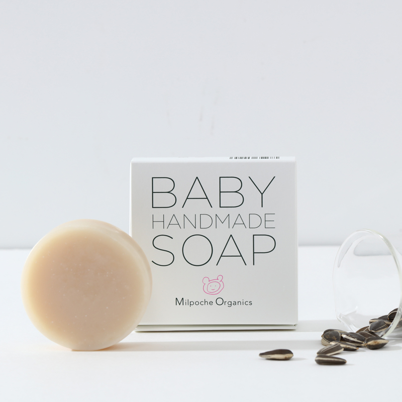 主成分はヒマワリ種子油で肌なじみの良い、やさしい植物オイルです。他にも保湿力を高めるシアバターや石けんの泡立ちや洗浄力には欠かせないヤシ油を当社オリジナルの配合で製造しています。
