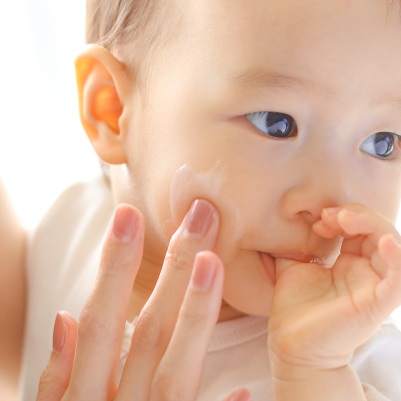 バリア機能を守るため、月桃ハーブウォーターや宮古島の植物エキスにプラスして、赤ちゃんの皮脂成分に近い保湿に優れた植物オイルなどを配合。植物オイルには、オリーブ果実油・アボカド油・シア脂・ホホバ種子油を使用。