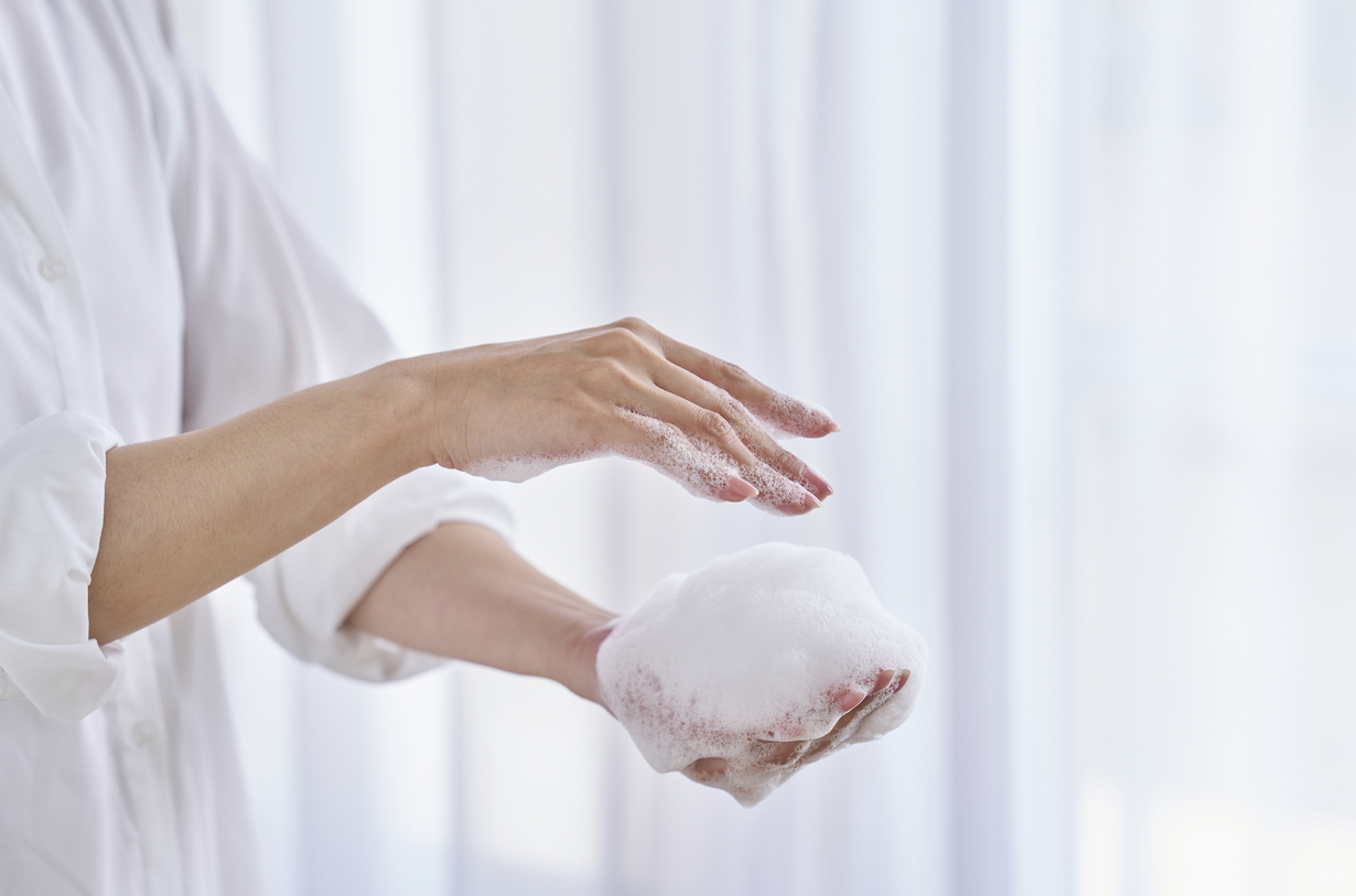 適量を手にとり、手の平で軽く泡立てから頭皮をマッサージするようによく泡立てて洗います。