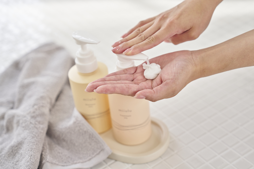 (1)シャンプー後に軽く水気をきり、適量を手にとります。